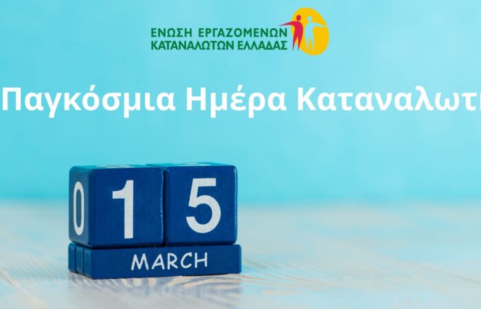 Με αφορμή την Παγκόσμια Ημέρα Καταναλωτή (15 Μαρτίου), η Ένωση Εργαζομένων Καταναλωτών Ελλάδας αναδεικνύει τα βασικά προβλήματα που αντιμετωπίζουν σήμερα τα ελληνικά νοικοκυριά. Στο πλαίσιο αυτό, παρουσιάζει τα αποτελέσματα της δράσης της στον τομέα των καταγγελιών και της ρύθμισης των οφειλών των μελών της κατά