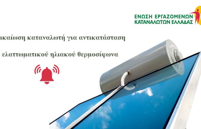 Μετά από επιτυχημένη παρέμβαση της ΕΕΚΕ, καταναλωτής – δικαιούχος επιταγής (voucher) στο πλαίσιο Προγράμματος «ΑΝΑΚΥΚΛΩΝΩ-ΑΛΛΑΖΩ ΘΕΡΜΟΣΙΦΩΝΑ» του Υπουργείου Περιβάλλοντος και Ενέργειας, δικαιώθηκε στη διαφορά του με μεγάλη αλυσίδα ηλεκτρονικών συσκευών από την οποία είχε αγοράσει ηλιακό θερμοσίφωνα. Συγκεκριμένα, παρά το ότι προχώρησε, μετά από υπόδειξη