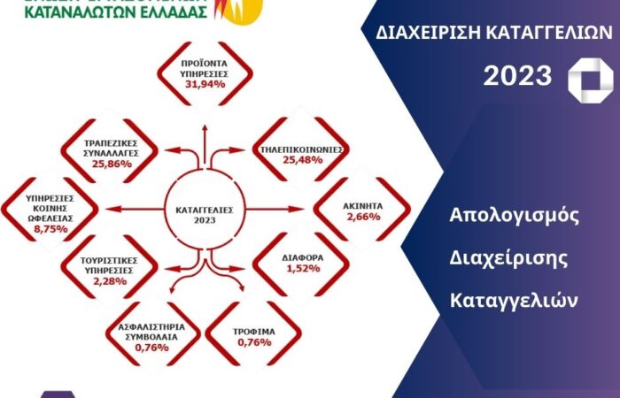 Απολογισμός Διαχείρισης Καταγγελιών 2023 Με απόλυτη επιτυχία στέφθηκε και ακόμα μία χρονιά ο στόχος της ΕΕΚΕ να διεκδικήσει τα συμφέροντα των καταναλωτών στον τομέα των καταγγελιών ιδίως σε μία χρονιά που εργαζόμενοι – καταναλωτές έχουν περιορίσει στο ελάχιστο τις δαπάνες διατροφής και διαβίωσης και κατά