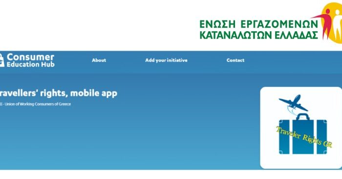 The mobile app “Traveler Rights GR”, was developed by Union of Working Consumers of Greece in 2018, the book in audio format entitled ‘’The Traveler’s Alphabet’’ and the accompanying videos, are included in the Consumer Education Hub (CEH) of the Directorate General of Justice (DG