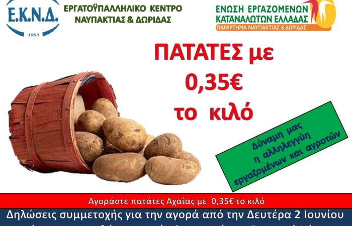 ΔΕΛΤΙΟ ΤΥΠΟΥ Διανομή Γάλακτος – Ζάχαρης Το Εργατοϋπαλληλικό Κέντρο Ναυπακτίας & Δωρίδας και η Ένωση Εργαζομένων Καταναλωτών Ελλάδας-Παράρτημα Ναυπακτίας & Δωρίδας ανακοινώνουν ότι συνεχίζεται η διανομή γάλακτος, ζάχαρης σε μέλη άνεργων οικογενειών. Καλούμε τους συμπολίτες μας, οι οποίοι πληρούν τις προϋποθέσεις, να επικοινωνήσουν με το