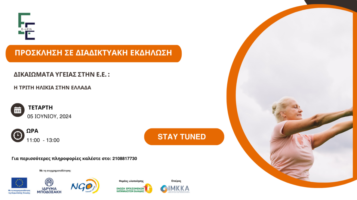 ΠΡΟΣΚΛΗΣΗ ΣΕ ΔΙΑΔΙΚΤΥΑΚΗ ΕΚΔΗΛΩΣΗ ΜΕ ΘΕΜΑ: «ΔΙΚΑΙΩΜΑΤΑ ΥΓΕΙΑΣ ΣΤΗΝ ΕΕ: Η ΤΡΙΤΗ ΗΛΙΚΙΑ ΣΤΗΝ ΕΛΛΑΔΑ»