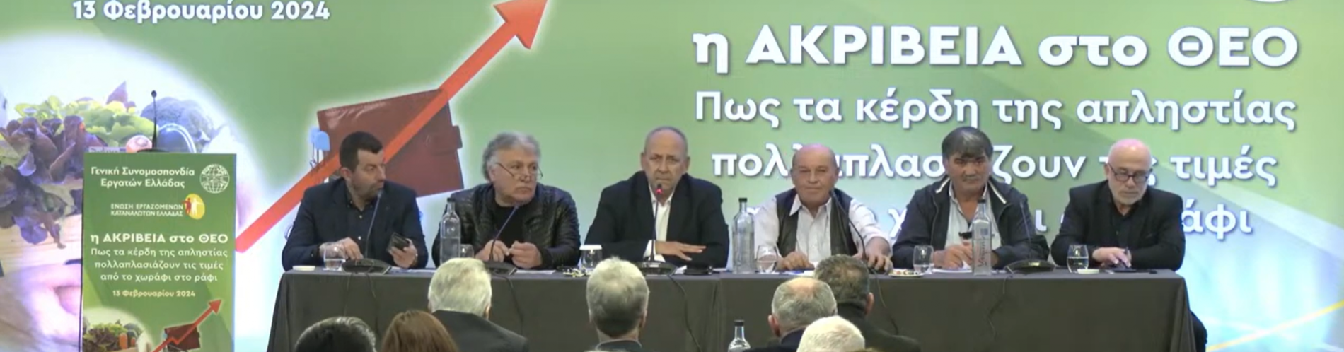 The President of the Union of Consumer Workers of Greece, summarized the conclusions from the conference, pointed out the fact that greedflation and supplier profiteering, which has spread in all sectors of the supply chain, directly affects the average consumer who has reduced the consumption of basic food items in 2023-2024. He formulated with examples the real situation that prevails in the market from farm to fork, where products are sold 4 and 5 times higher than the original selling price from the producer He also hoped that such meetings of workers and producers would be repeated in the future, so that the battle for the establishment of an embankment against the inflation of profiteering would be fought together.