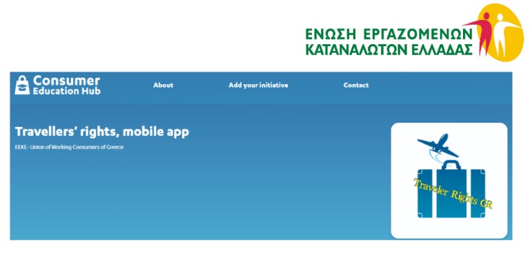 The mobile app “Traveler Rights GR”, was developed by Union of Working Consumers of Greece in 2018, the book in audio format entitled ‘’The Traveler’s Alphabet’’ and the accompanying videos, are included in the Consumer Education Hub (CEH) of the Directorate General of Justice (DG JUST ) of the European Commission.