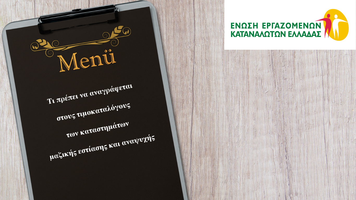 ΤΙ ΠΡΕΠΕΙ ΝΑ ΑΝΑΓΡΑΦΕΤΑΙ ΣΤΟΥΣ ΤΙΜΟΚΑΤΑΛΟΓΟΥΣ ΤΩΝ ΚΑΤΑΣΤΗΜΑΤΩΝ ΜΑΖΙΚΗΣ ΕΣΤΙΑΣΗΣ ΚΑΙ ΑΝΑΨΥΧΗΣ