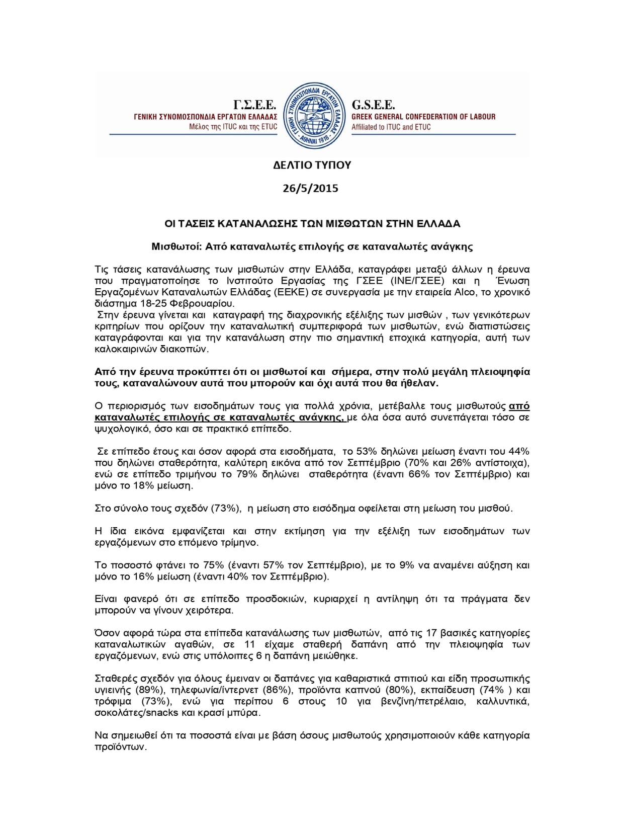 Τάσεις κατανάλωσης των μισθωτών στην Ελλάδα, 2015