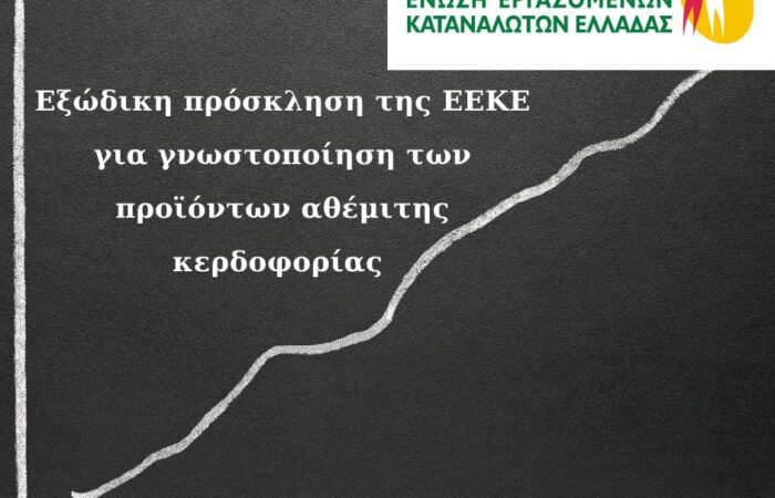 The Union of Consumer Workers of Greece requests the Interagency Market Control Unit (D.I.M.E.A.) and the Minister of Development, Mr. Konstantinos Skrekas, to disclose the products of the unfair profitability of the two multinational companies . To read the extrajudicial invitation click here Greek citizens cannot