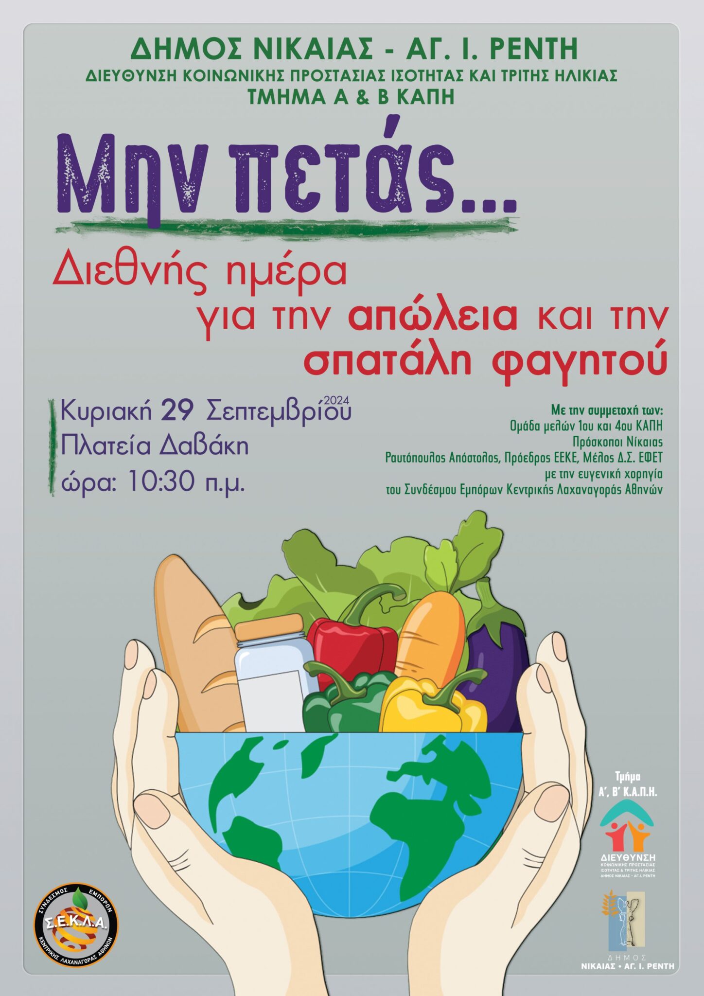 Apostolos Raftopoulos, President of the Union of Working Consumers of Greece, is the keynote speaker at the event of the Municipality of Nikaia – Ag. I. Rentis for International Day of Awareness of Food Loss and Waste on September 29th.