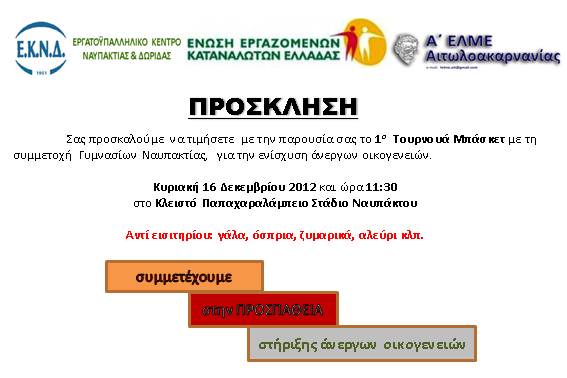 Ναύπακτος: Τουρνουά Μπάσκετ με σκοπό ενίσχυση τροφίμων του Κοινωνικού Παντοπωλείου